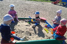 Дети второй группы раннего возраста любят гулять под ярким летним солнцем. На прогулке они играют, веселятся, катаются на горках. А так же малыши любят делать разные фигурки из песка.