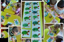 Цель работы: воспитывать эстетическое восприятие природы: учить изображать животных, развивать цветовосприятие и чувство композиции; продолжать знакомить детей с новой техникой раскрашивания; развивать навыки детей рисовать черепашку с помощью акварели и соли (нетрадиционная техника рисования). Ребята средней группы научились вносить в рисунок дополнения с помощью пипетки и красок.