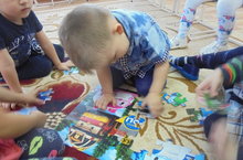 Когда есть свободное время, дети младшей группы с удовольствием собирают пазлы. Это одна из любимых игр детей. Кто-то любит играть один,кто-то объединяется с товарищем. В игре малыши учатся общаться, договариваться, уступать друг другу, радоваться общему результату.