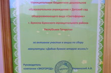Руководитель компании "ЭКОГОРОД" Украинский А.В. вручил коллективу МБДОУ "Светофорик" грамоту за активное участие в акции по сбору макулатуры ".