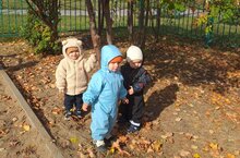 На прогулке малыши продолжили знакомство с природой: собирали опавшие листья, подбрасывали их вверх и радовались листопаду. -