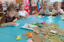 Воспитанники первой младшей группы совместно с родителями принимают активное участие в создании поделок из природного материала для выставки "Осенние фантазии".