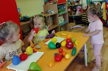 Сегодня воспитанники первой младшей группы говорили об овощах и фруктах. Такие наглядные занятия направлены на расширение представлений детей об овощах, их внешнем виде, названиях, вкусе и пользе. Занятия строятся на основе сенсорного восприятия (ощупывание, рассматривание, называние), а также включают в себя дидактические игры, пальчиковые гимнастики и другие развивающие активности.