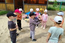 Затем ребята поиграли в малоподвижную игру «Передай мяч», целью которой является развитие умения выполнять движения ритмично. -