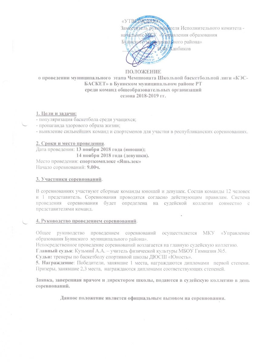 Положение КЭС БАСКЕТ 13-14 октября 2018 г.
