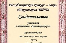 Сәнгать мәктәбенең декоратив-гамәли бүлеге укучылары Әхмәтҗанова Зилә һәм Каюмова Саида "ЭТНО территориясе" республика конкурс-күргәзмәсендә "Этноксессуарлар"номинациясендә катнаштылар.