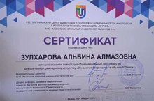 Балалар сәнгать мәктәбенең сәнгать бүлеге укучысы Зөлхарова Альбина "Сириус" узәгендә уку узды һәм сертификат алды.