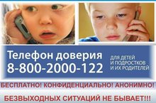 8-800-2000-122 - телефон службы доверия для подростков и детей,