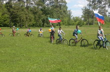 Велопробег с флагами Российской Федерации и Республики Татарстан.