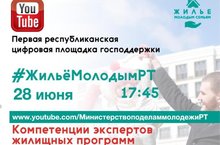 Республики Татарстан в рамках мероприятий Всероссийского Дня молодежи, в целях повышения эффективности информирования молодежи о действующих в Татарстане программах и мерах государственной поддержки молодых семей, молодых специалистов в улучшении жилищных условий 28 июня 2021 года в 17.45 проводится второй прямой эфир #ЖильёМолодымРТ.