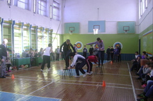 В рамках месячника военно-спортивного патриотизма была проведена эстафета "Весёлые старты" среди родителей и учащихся 5,6,7 классов!