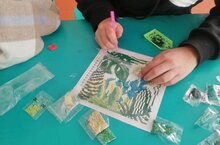 Открытие недели технологии, музыки, ИЗО. "Секреты алмазной мозаики". Работа 6 класса. Цель: познакомиться с историей возникновения и приемами алмазной мозаики, изготовить картину в технике "алмазной мозаики".