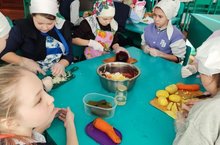 Девочки с удовольствием приготовили винегрет, а мальчики сделали фруктовый салат. Оба салата были изумительно вкусными.Молодцы, ребята! Вы настоящие помощники в семье.