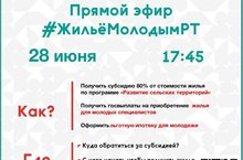 Буинский муниципальный район сообщает, что Министерством молодежи Республики Татарстан в рамках мероприятий Всероссийского Дня молодежи, в целях повышения эффективности информирования молодежи о действующих в Татарстане программах и мерах государственной поддержки молодых семей, молодых специалистов в улучшении жилищных условий 28 июня 2021 года в 17.45 проводится второй прямой эфир #ЖильёМолодымРТ.