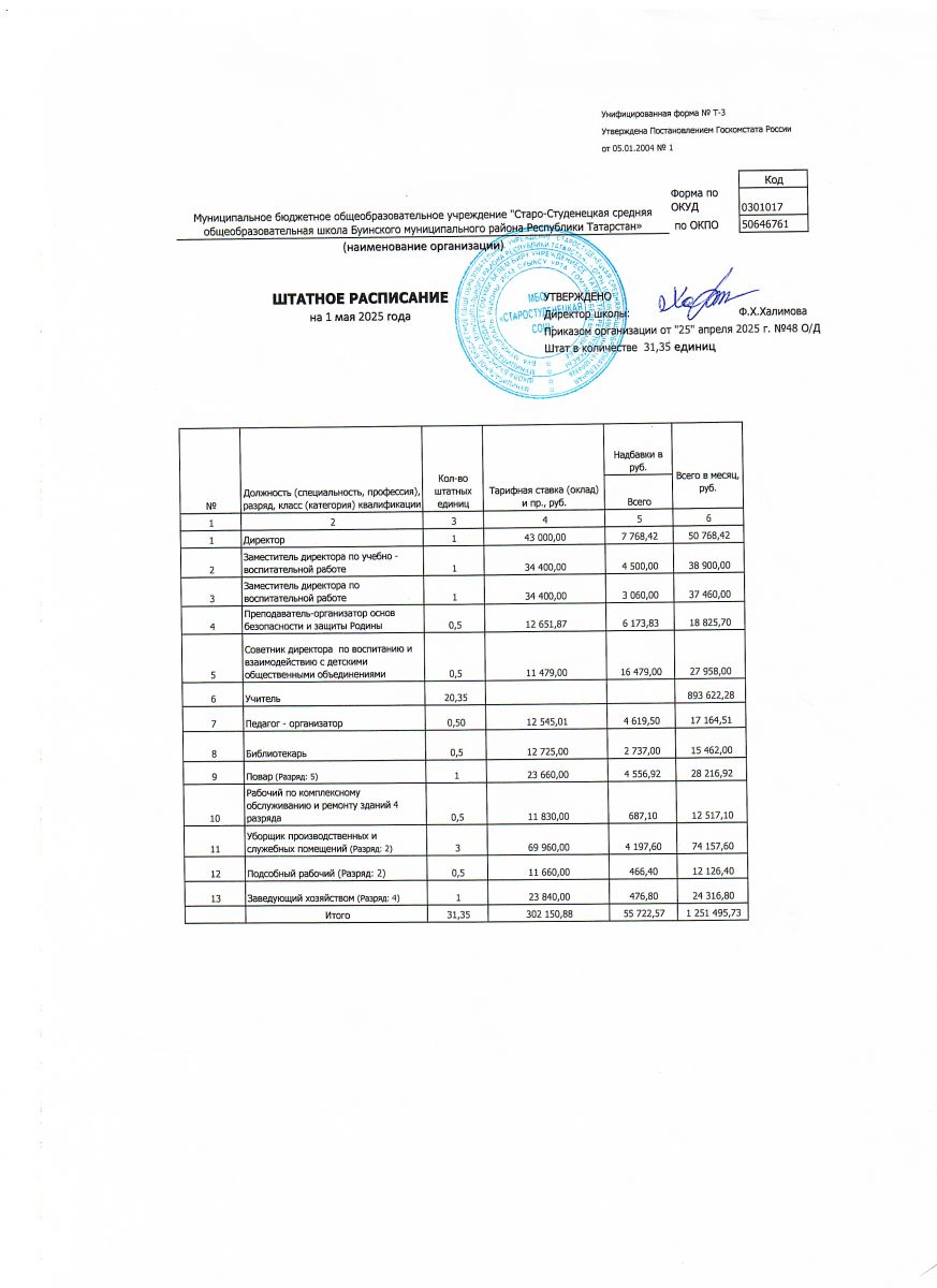 Штатное расписание