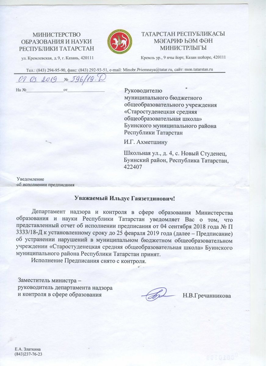 Адрес: 422407,Республика Татарстан,Буинский район, село Новый Студенец, ул. Школьная, д. 4