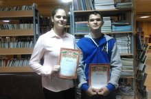 Ермоленко Екатерину и Мостякова Евгения со вторым местом в интеллектуальной игре "Брейн-ринг" среди студентов и школьников.