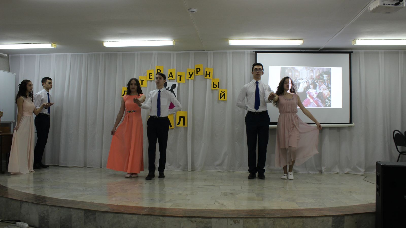 28 января в гимназии прошел литературный бал для учащихся 9-11 классов. Старшеклассники показали бальные танцы 19 века-полонез, вальс, мазурку, читали стихотворения А.С.Пушкина, цитировали письма великого поэта, исполнили старинные романсы, прочли отрывки из произведений Л.Н. Толстого.