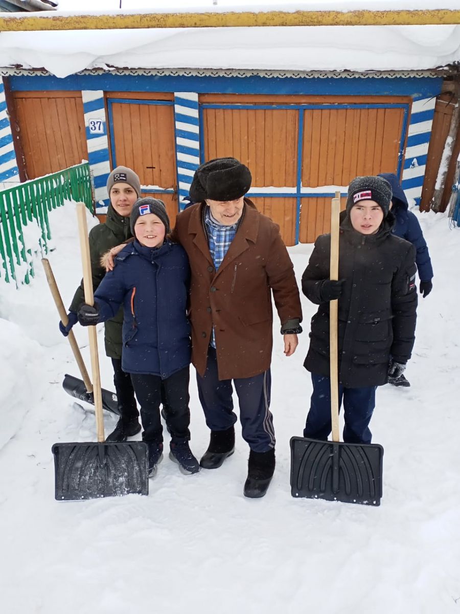 Обучающиеся 8б кл. гимназии оказали адресную волонтерскую помощь одинокому пожилому пенсионеру. Добровольцы навестили Дышина Мансура Валиевича. Ребята убрали и вынесли снег со двора его частного дома.