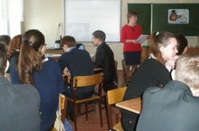 Потом учитель обществознания рассказала о Парламентском уроке -2016, представила депутата, присутствующего на уроке.