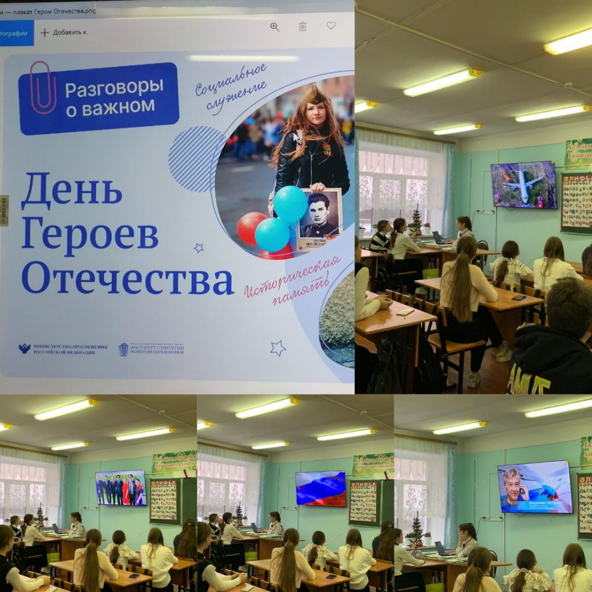 На "Разговорах о важном" сегодня говорили о Героях Отечества. Школьники обсуждали такие вопросы: «Кто такой герой? В чём заключается героизм?», «Вспомним, каких героев мы знаем? Может ли каждый из нас быть героем?». Ребята смотрели презентации и видеоролики. Итогом занятия стали выводы о патриотизме, героизме и о важном значении таких понятий в жизни каждого человека, гражданина России.