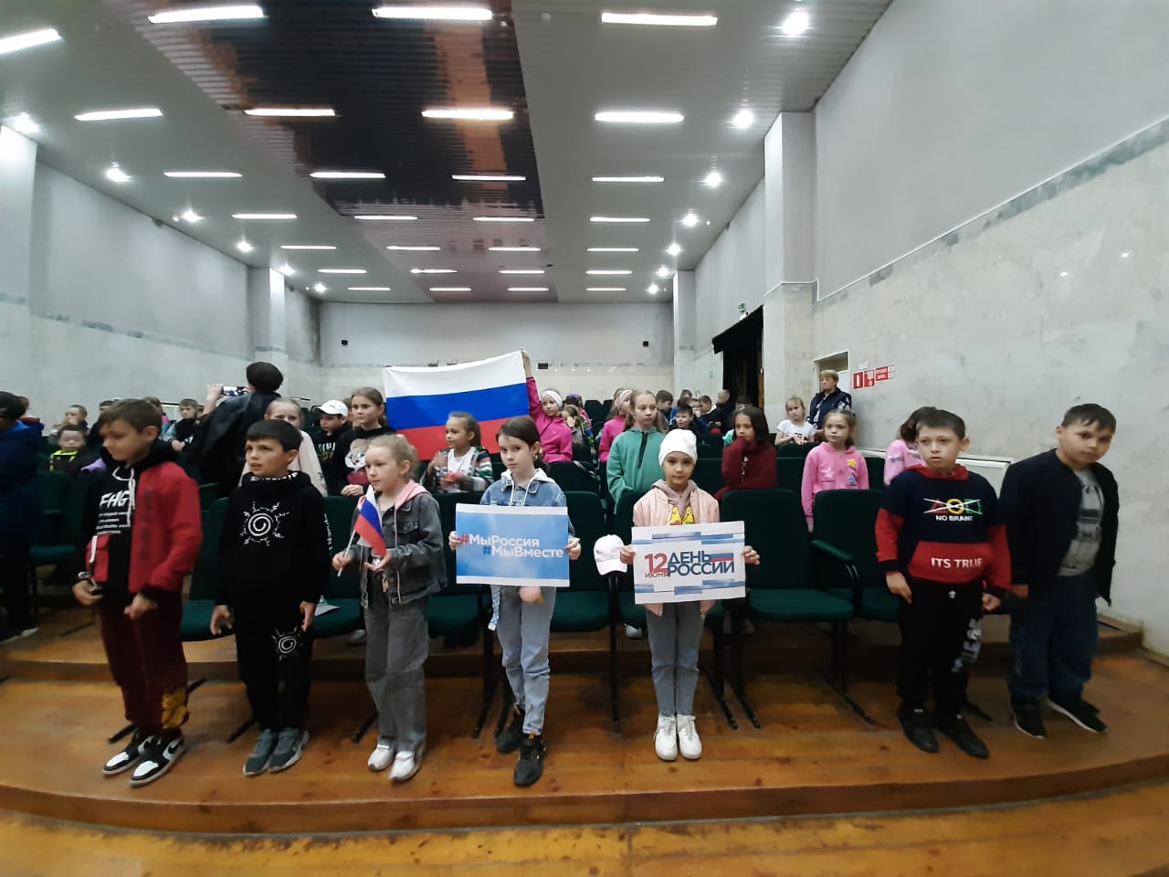 2 и 3 отряд посмотрели мультфильм "Огрики" в Досуговом центре и приняли участие во флешмобе посвященному Дню России.