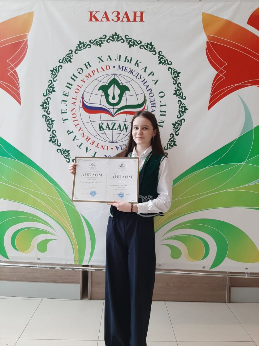 Быелгы IХ Халыкара олимпиадада безнең гимназиянең 8а сыйныфы укучысы Мөхәммәтшина Лиана һәм 10 сыйныф укучысы Кадирова Эльвина катнаштылар. Алар әлеге олимпиадада татар теле һәм әдәбиятыннан үзләренең тирән белемнәрен күрсәттеләр, “Минем шәҗәрәм” темасына эшләгән проектларын якладылар. -
