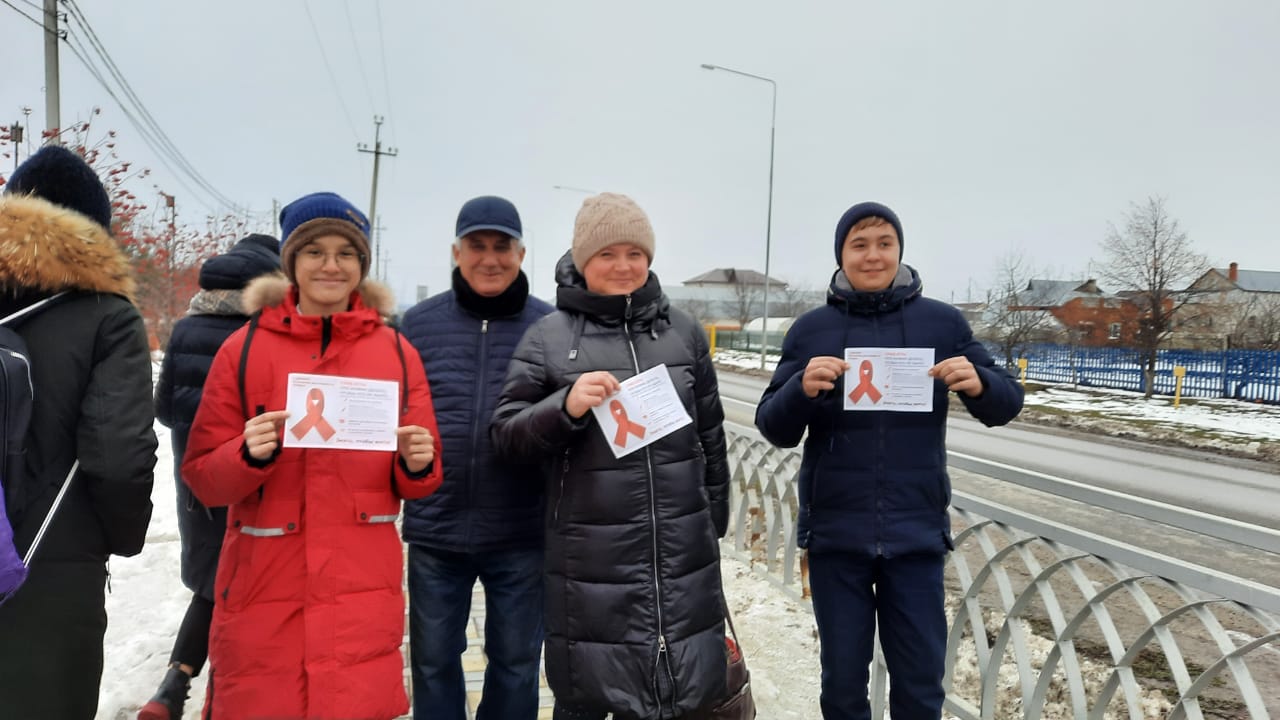 Активисты кружка Eco-time и СМС -дети провели акцию «Осторожно: СПИД», приуроченную ко Всемирному Дню борьбы со СПИДом. Акция направлена на привлечение внимания людей, на активное информирование и донесение важной и необходимой информации. В ходе этой акции раздали информационные буклеты, рассказали о проблемах СПИДа, проинформировали о путях передачи ВИЧ-инфекции, а также о том, как защитить себя и своих близких от этой болезни.