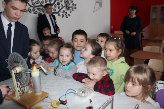 Для будущих первоклассников было организовано праздничное открытие и экскурсия по школе. Ребята посетили библиотеку, кабинет химии, географии, физики и информатики, где дети увидели предметное оборудование, интересные опыты и роботов. Дошколята с большим интересом приняли участие в экспериментах. Путешествие завершилось в столовой, чаепитием с вкусными блинами и повидлом. На прощание дети получили воздушные шарики.