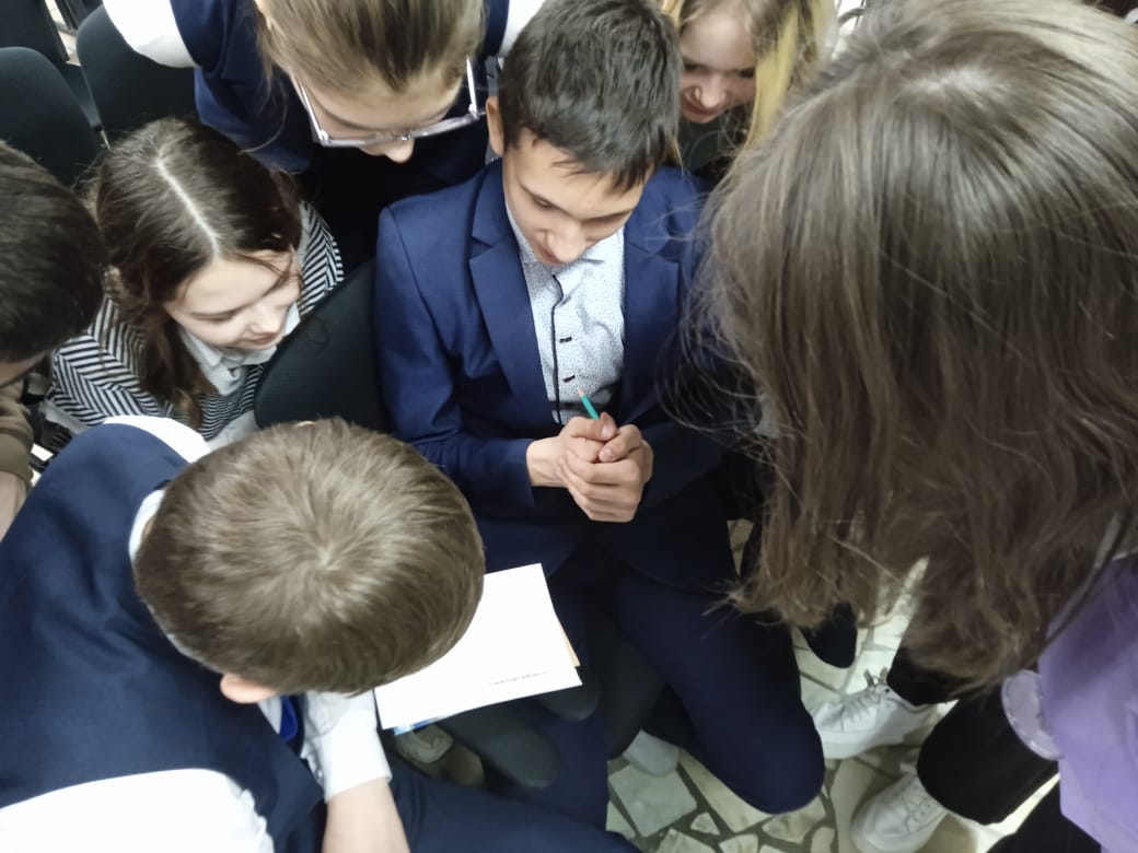 Опубликовано: 03.03.20233 марта в гимназии 5 работниками "Библиотеки семейного чтения" был проведен интеллектуальный марафон "Служу Отечеству" с учениками 8 б класса. Ребята, поделившись на две команды, испытали себя в различных конкурсах: "Угадай песню", "Знаешь ли ты воинские звания", "Блиц-игра" и другие.