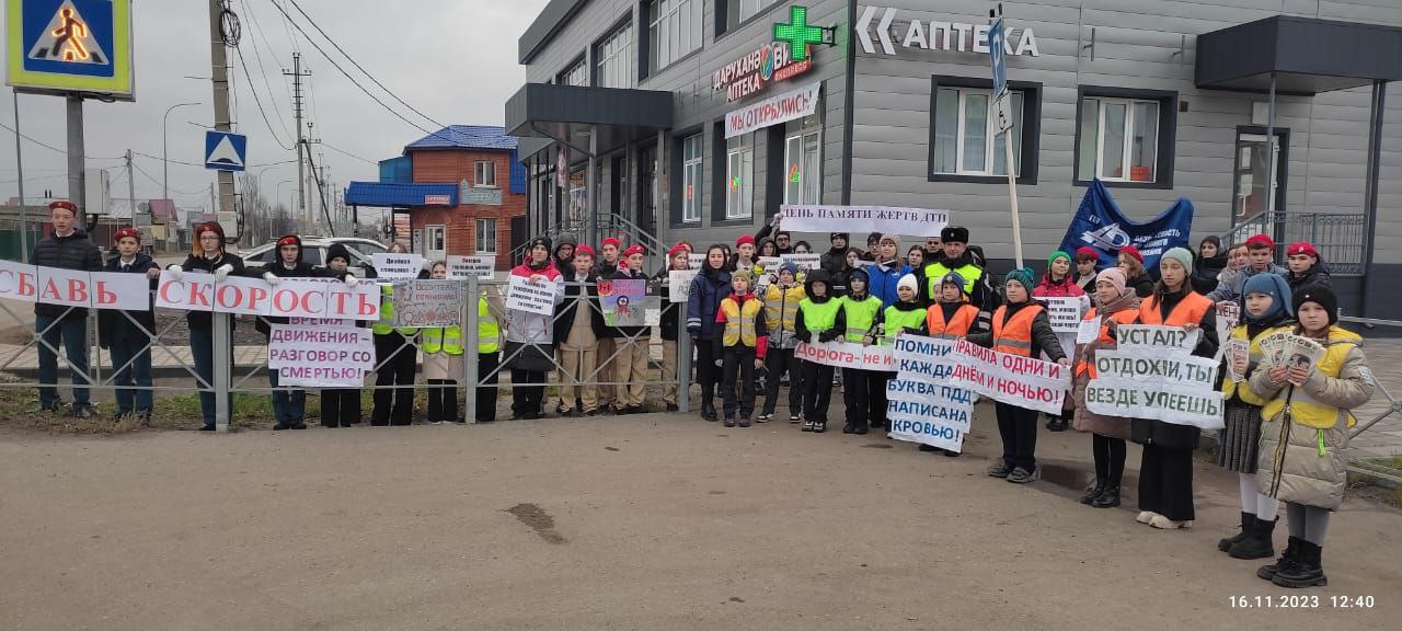 Опубликовано: 19.11.2023Ежегодно в третье воскресенье ноября отмечается Всемирный день памяти жертв ДТП. В целях привлечения широкой общественности к проблемам обеспечения БДД, снижения смертности и травматизма в результате ДТП, противодействия правонарушениям на дороге 16 ноября 2023 года с 12.00 до 13.00 часов с участием работников ведомств, организаций, учащихся школ, студентов учебных заведений была проведена широкомасштабная информационно-пропагандистская акция, приуроченная к Всемирному дню памяти жертв ДТП.