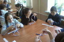 С математическими неожиданностями листа Мёбиуса столкнулись сегодня учащиеся 5 А класса. Они увлеченно провели различные эксперименты и узнали, что этот лист имеет только один край, одну сторону. Много интересного и удивительного узнали дети во время занятия о разделе математики, которая называется топологией.
