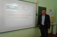 «Афганистан болит в душе моей…» Так строчкой из песни назван классный час, посвященный воинам, служившим в Афганистане ( учитель истории Аютов А.М.). -