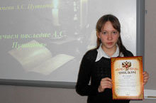 27 ноября в городе Лениногорск состоялась IV зональная научно – практическая конференция имени А.С.Пушкина. Из нашей школы на этой конференции выступала ученица 10 класса Краснова Ольга (учитель Евдокимова И.А.). Оля заняла III место. Поздравляем! -