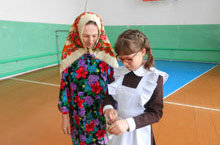 Учитель чувашского языка и литературы Макарова Е.В. вышла в финал Всероссийского конкурса «Туган тел». Сегодня участники показывали мастер – класс, а второе испытание – защита национального костюма. Наш коллектив не остался в стороне, мы участвовали в защите костюма. -