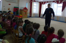 Сегодня в детском саду с воспитанниками старшей, средней и младшей групп муниципальный инспектор по делам несовершеннолетних провел разъяснительную беседу с целью предупреждения наступления несчастных случаев и сокращения случаев детского травматизма