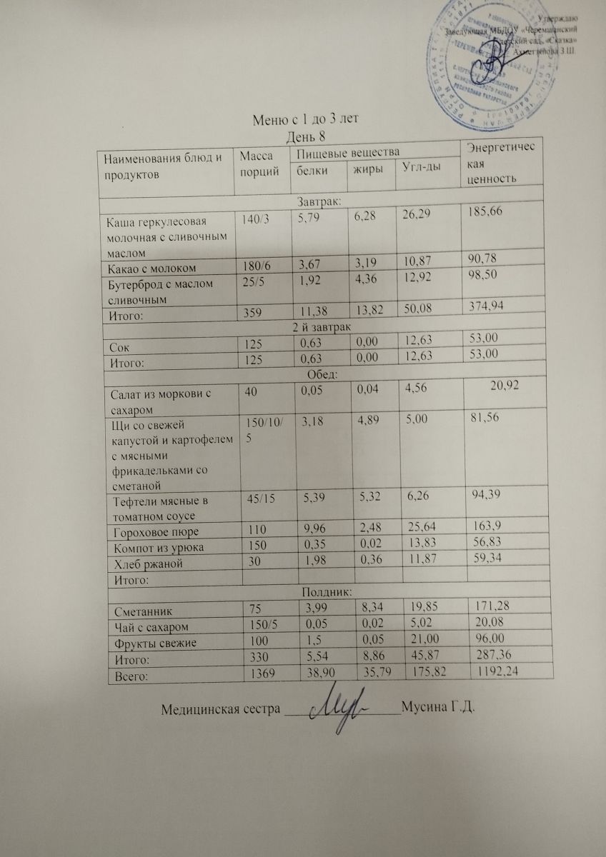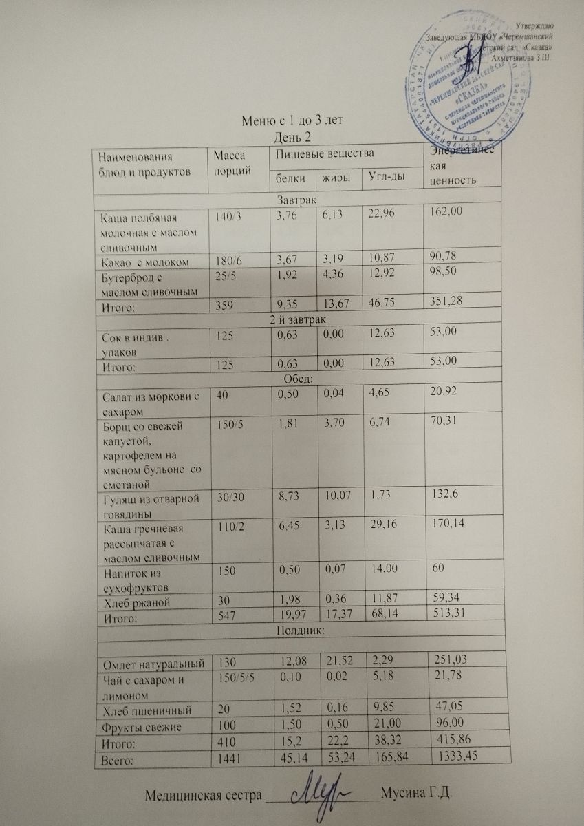 Примерное 10ти дневное меню для детей от 1-3 лет (ОСЕННИЙ ПЕРИОД)