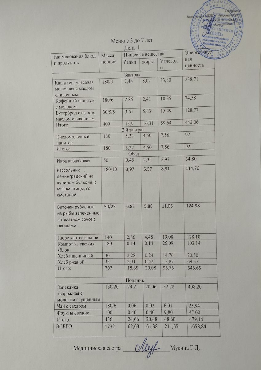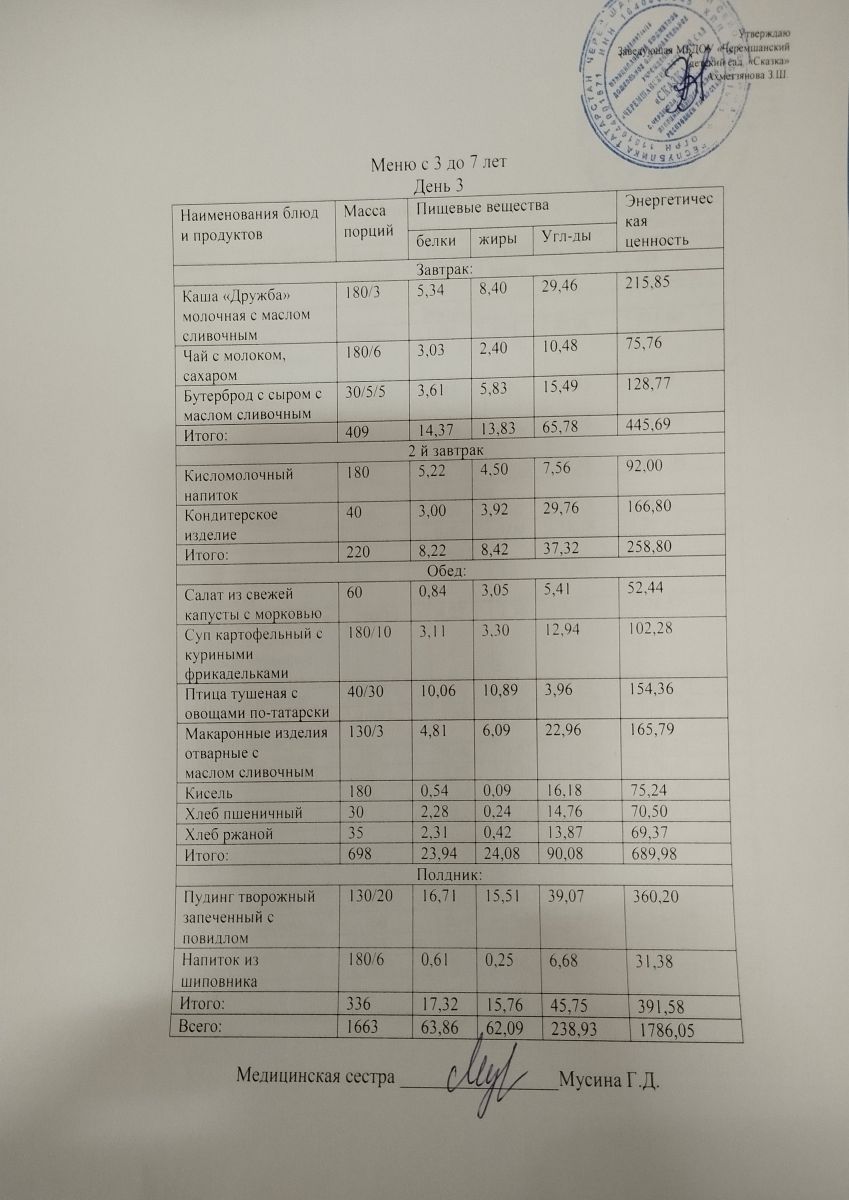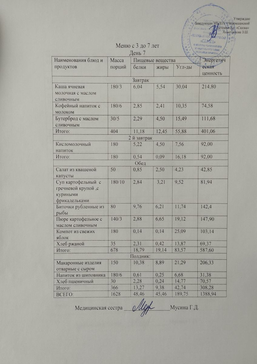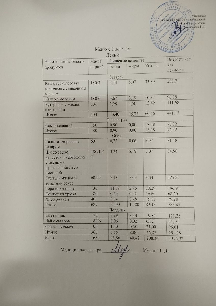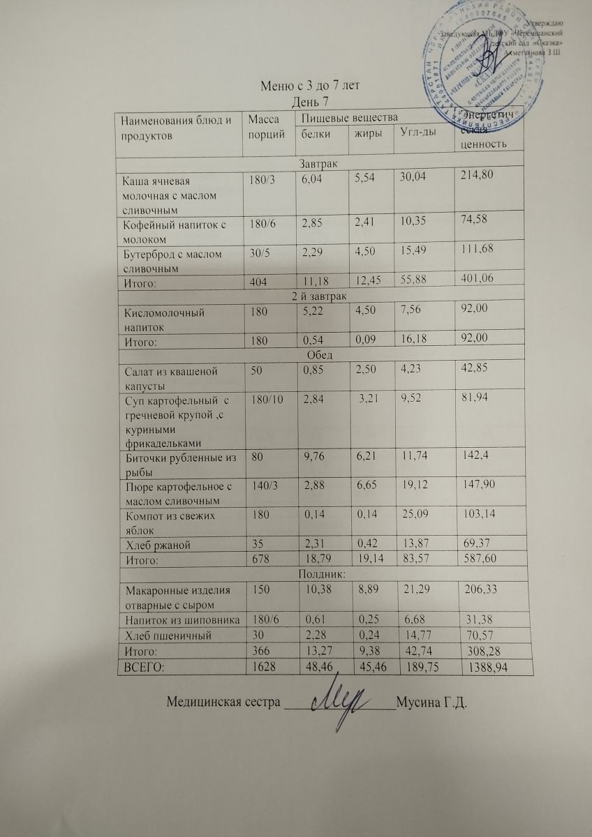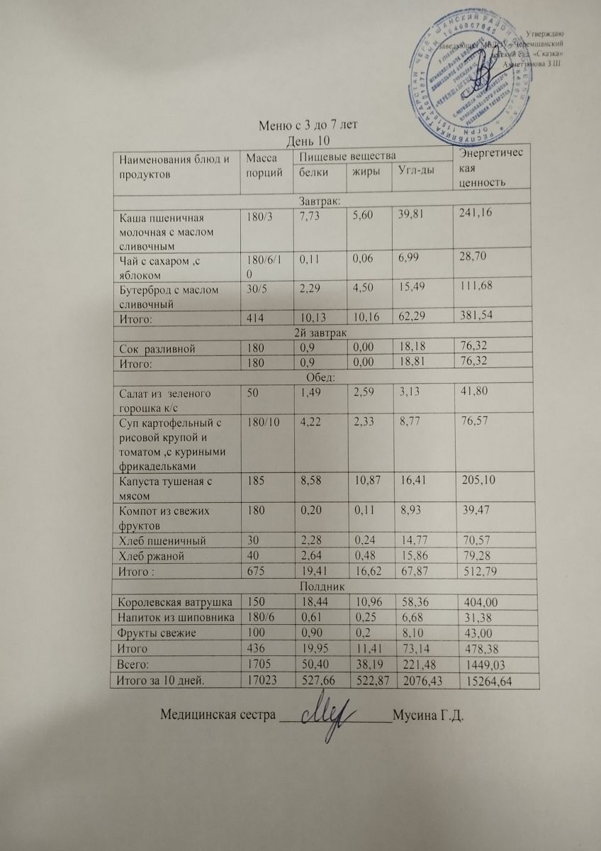 Примерное 10ти дневное меню для детей от 3-7 лет (ОСЕННИЙ ПЕРИОД)