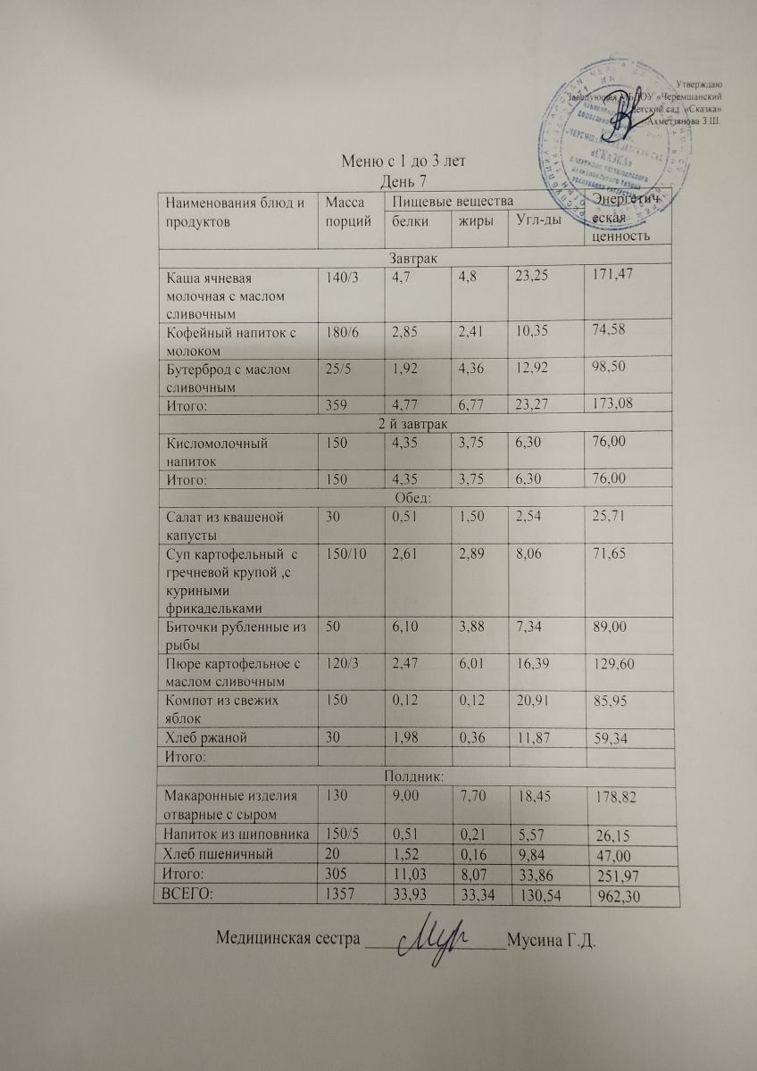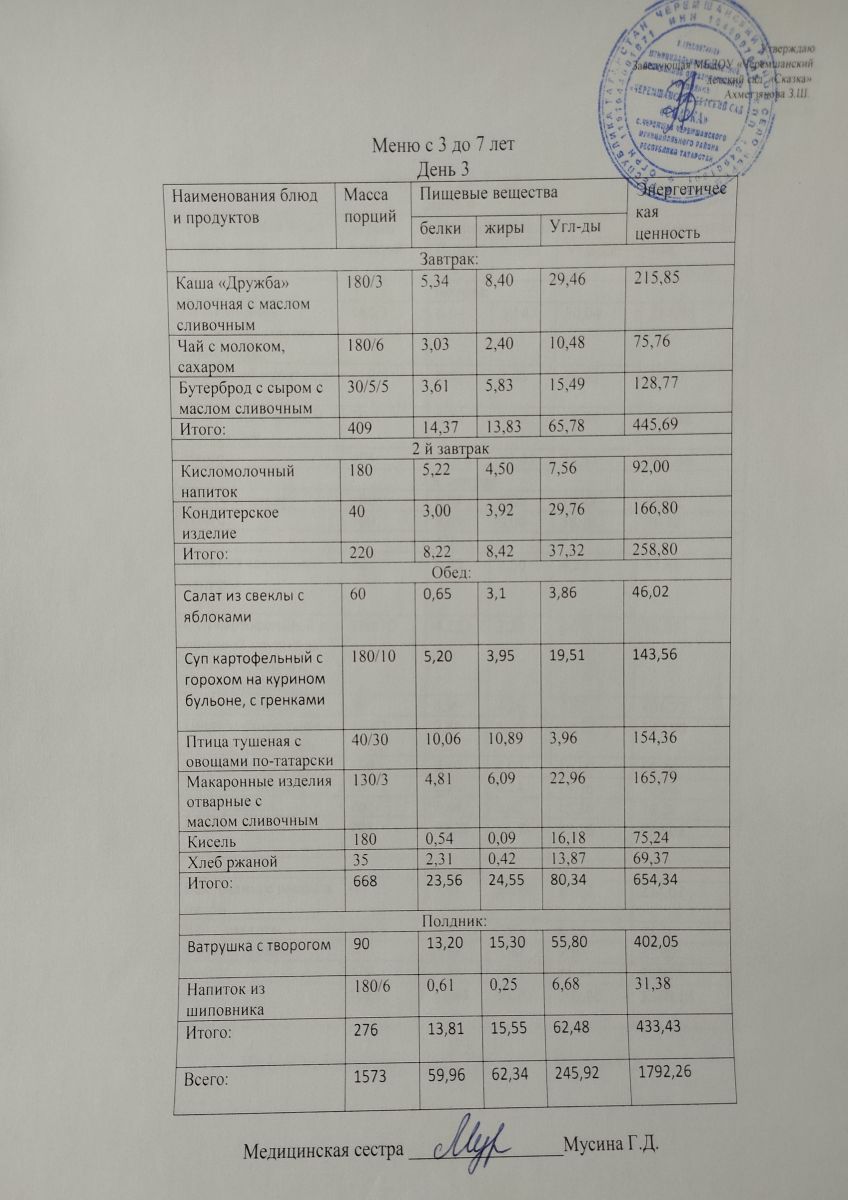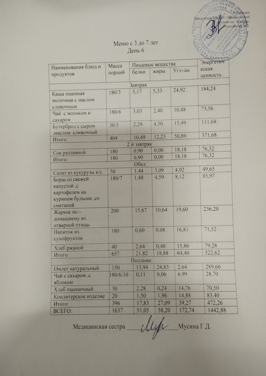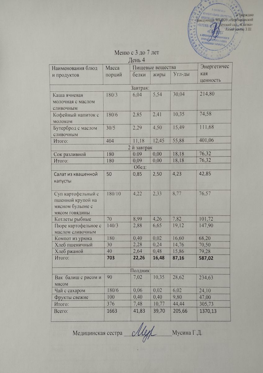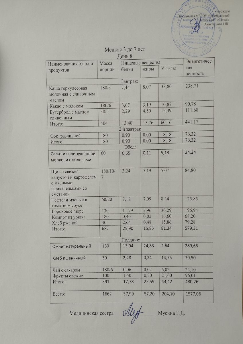 Примерное 10ти дневное меню для детей от 3-7 лет (ОСЕННИЙ ПЕРИОД)