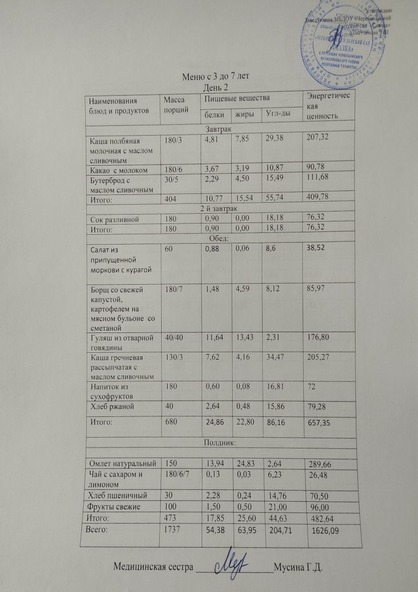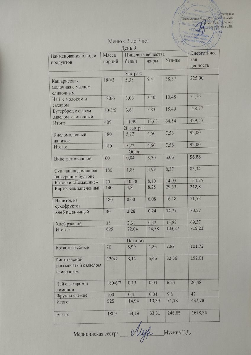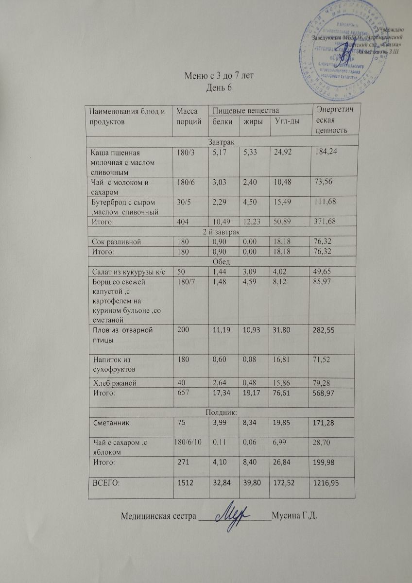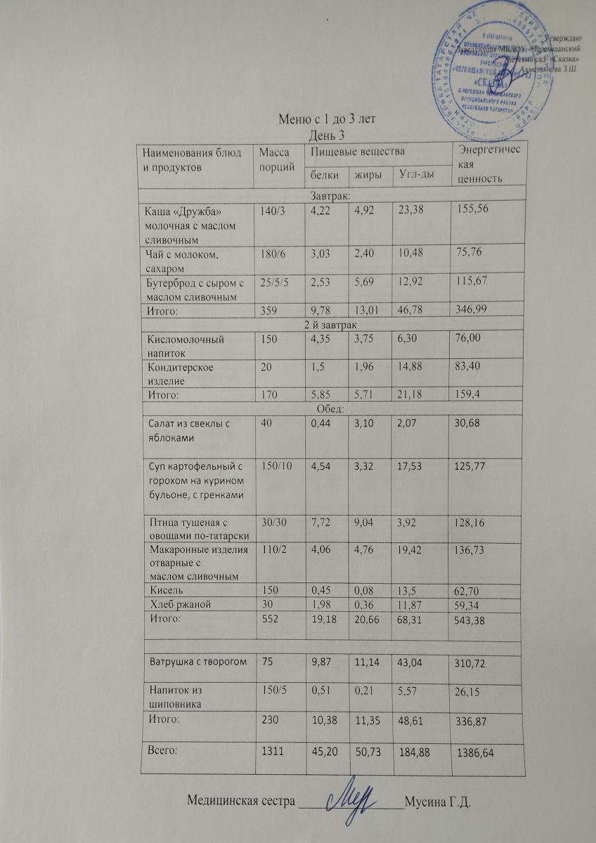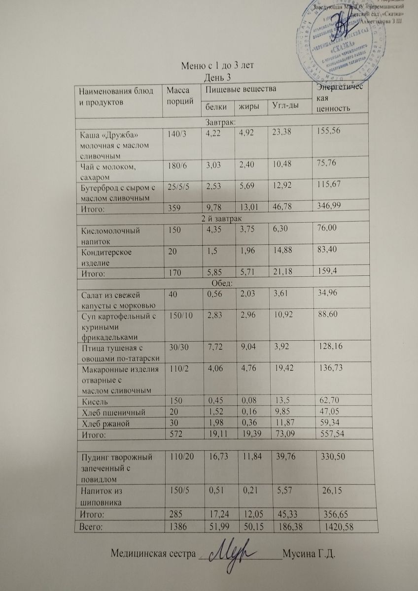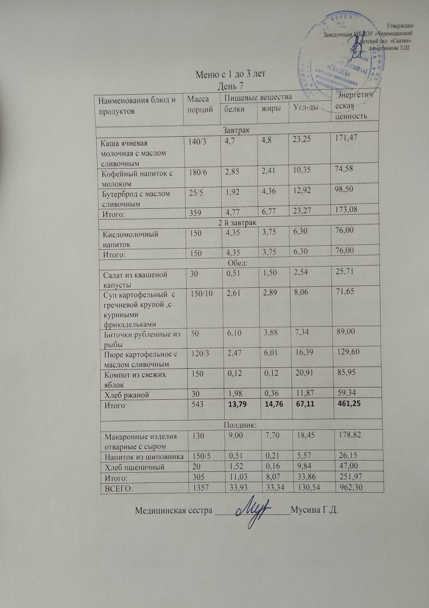 Примерное 10ти дневное меню для детей от 3-7 лет (ОСЕННИЙ ПЕРИОД)