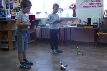 Очень увлекательно и старательно дети собрали роботы.И решили управлять их с помощью планшетов.