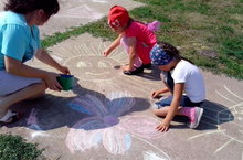 Ямьле җәй белән саубулашу балаларга бераз моңсу тоелса да, августның соңгы көннәрендә алар асфальтка истәлек өчен җәй турында рәсемнәр ясадылар. тәрбиячеләр балаларга рәсемнәрнең композициясен төзергә ярдәм иттеләр.