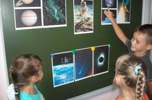 В день Космоса мы с детьми беседовали о космонавте Ю.А.Гагарине. Отгадывали загадки о космосе, рассматривали иллюстрации. Особенно детям понравилось строить из геометрических фигур ракеты будущего.