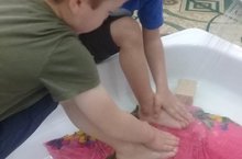 Бу күнегүләр балалар белән уен формасында оештырылды. Без барыбыз да беләбез, аяк табаны астында күпчелек массаж нокталар урнашкан, шул рәвешле, без шул күнегүләр аша аларга тәэсир итеп балаларның сәламәтлекләрен арттырырга тырышабыз.