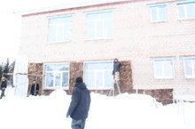 Обшивка фасада здания в детском саду.