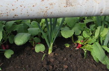 Хотя на улице очень много снега, у нас в теплице созрели редис и зеленый лук.