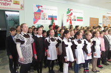 В школе идет репетиция к конкурсу по исполнению гимнов России и Республики Татарстан.