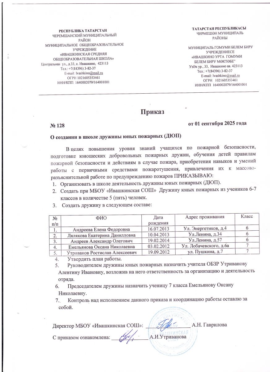 Адрес: 423113, Республика Татарстан, Черемшанский район, с. Ивашкино, ул. Центральная, д. 33