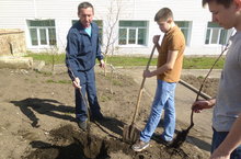 Сегодня, в подарок школе воспитанники 9 класса (выпуск-2016 года) посадили яблони, под руководством воспитателя Сулейманова Р.Г.