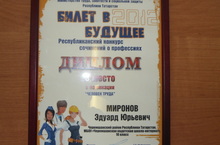 Миронов Эдуард, ученик 10 класса, занял 3 место в республиканском конкурсе сочинений о профессии на тему "Человек труда "
